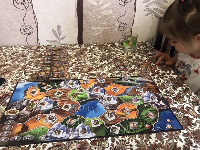 Относительно неигровые 😄 обычно играем без перерыва. А тактика дочкина почти сработала, она очень много карточек еды набрала, просто нужные ей бонусы приносят меньше очков) она очень любит сыр, чтобы карты угроз подсматривать