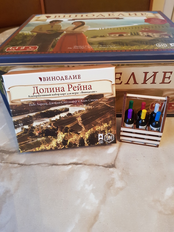 ЕврогеймыПолучили вчера наше дополнение к Виноделию- Долина Рейна. Коробочка мааааленькая-мииииленькая, а там 2 колоды карт полностью заменяющих карты летних и зимних гостей в базовой версии и Тоскане. Ну и бутылочки, конечно, хорооошенькие такие))