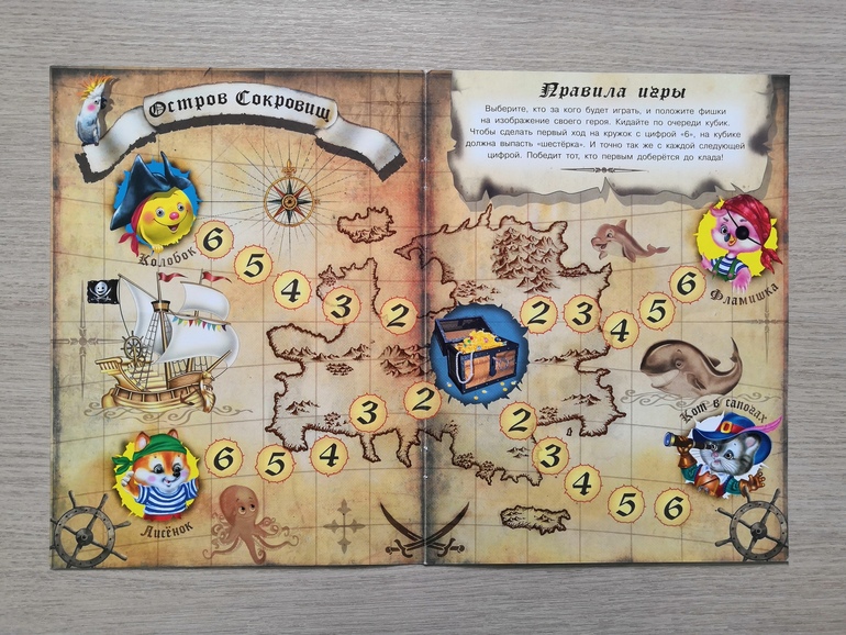 Еще вариант необычной ходилки (не самый лучший, правда). Кто быстрее доберется до сундука. Цифры на дорожке показывают значение кубика, которое надо выбросить, чтобы на нее встать.