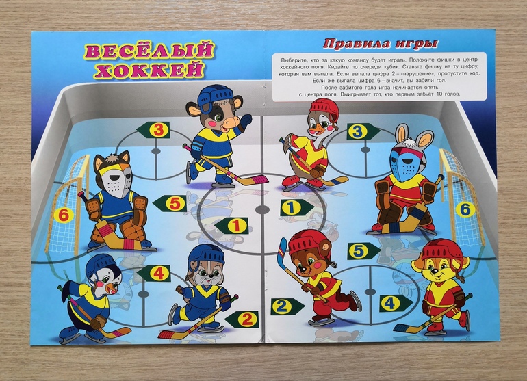 А вот дуэльная ходилка-хоккей (есть еще футбол). Встаем в центре поля, бросаем кубик и передвигаемся по полю. Шестерка - гол.