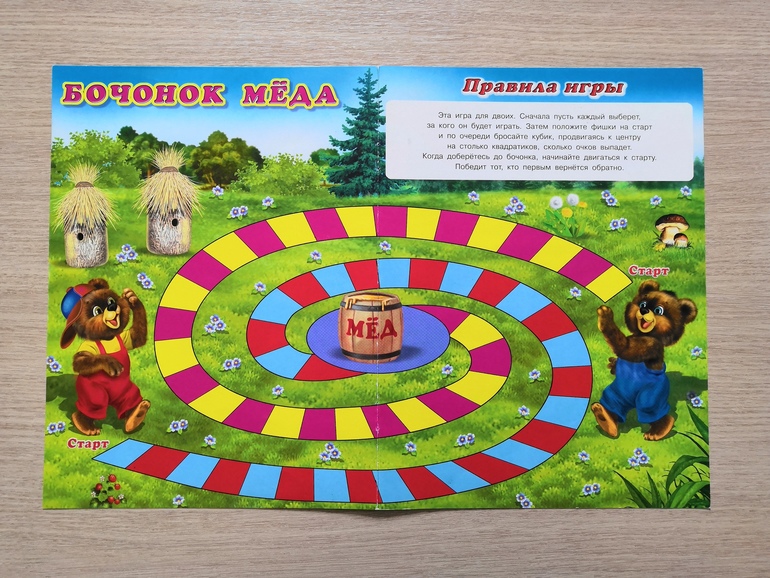и не совсем. Вот, например, каждому медвежонку нужно пройти по своей дорожке к меду и вернуться обратно. Очень нам нравилась эта игра с старшим сыном. Сейчас и младший оценил.