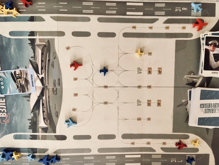 Ксения, нам вчера очень понравился Взлёт разрешён. Сегодня дочка уже отложила коробку, чтобы поиграть. И мне тоже не терпится. Только мне наоборот идея блокировать полосы и очередь в пункты D пришлась по душе. Таким образом не всегда удаётся разместить самолёт на нужную точку в свой ход. Тот же vip успевают занять буквально перед твоим ходом и приходится ждать два круга, пока удасться туда отправить свой борт. Да и очередь на ВВП при игре втроём частенько приходится ждать, не двигаясь из пунктов B и C. Всё это создаёт трудности и повышает интерес.