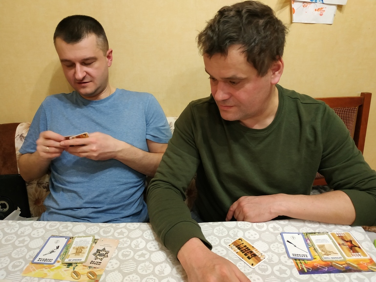 Выбрал сын. Одна из самых-самых любимых его игр. Сыграли две партии, выиграл каждый по разу.