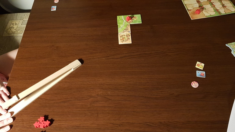 Сыграли в Каркассон. Ну так себе, ощущения у дочки не изменились, не нравится ей игра и точка. Как-то она её не может раскусить. Печалька. А я люблю, с сыном играли очень очень много.