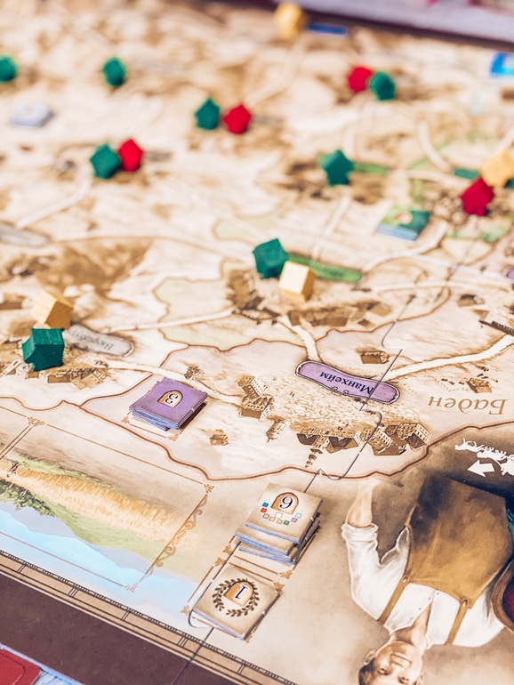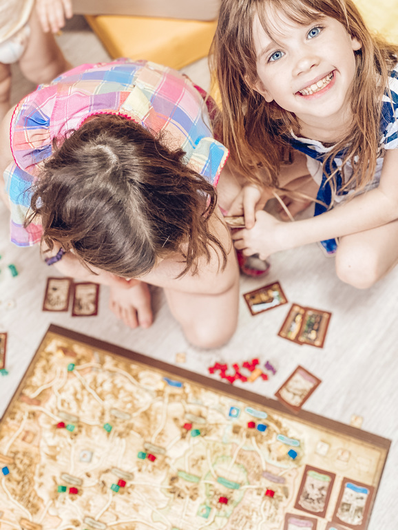 Все сошлось 30 апреля и мы с детьми игру освоили. Оказалось правила не сложные, дети разобрались очень быстро, отлично строили маршруты. Игра под конец уже кажется немного затянутой, но это только потому, что в ней ощущается даунтайм. Особенно, если утащат нужную тебе карту прямо перед твоим ходом. Вот и сидишь думаешь что же взять. Поэтому младшая дочь под конец уже устала и начинала уходить гулять после своего хода.