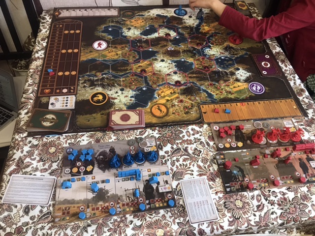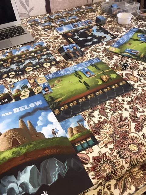 С мужем удалось сыграть всего 2 раза, но зато сразу в 2 монстров Above and Below - евро с очень интересной механикой приключений