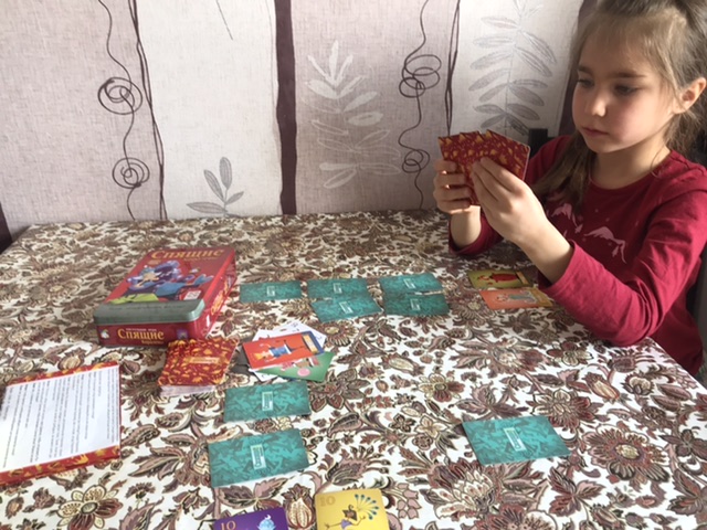 Выиграла снова я, муж целиком ушёл в науку, забив на все остальное, набрал он карт немало, но не достаточно для победы, дочь от него не намного отстала. От игры она в восторге.