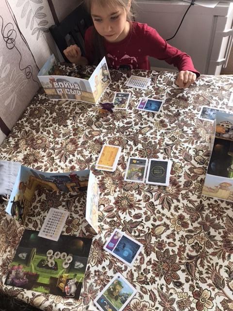 Играем в неё так часто, что у меня начинает дергаться глаз, когда дочь ее просит. Опять выиграла я. Муж ее тоже не особо жалует, играем ради дочери, используем карты кланов. Втроём играется чуть бодрее.