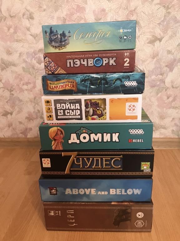 Это стопочка игр за 1 и 3 мая, второго мая мы всей семьей на даче дружно «играли» в Агриколу 😅.