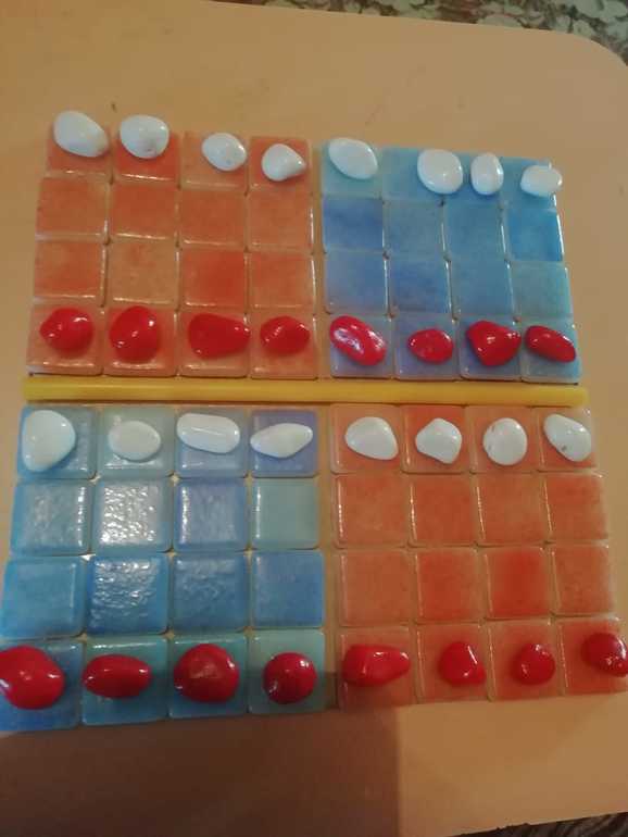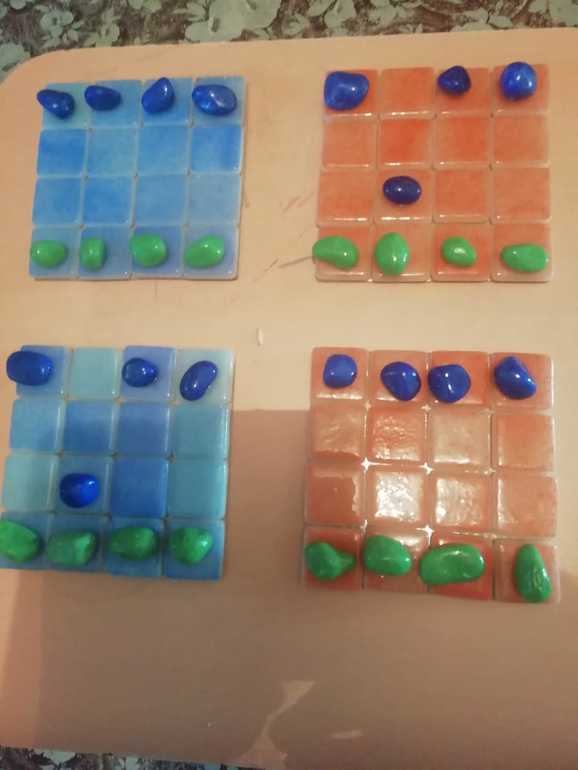 Сначала хотела все на одном поле оставить, потом поняла, что так неудобно выталкивать камни за пределы поля. Разрезала.