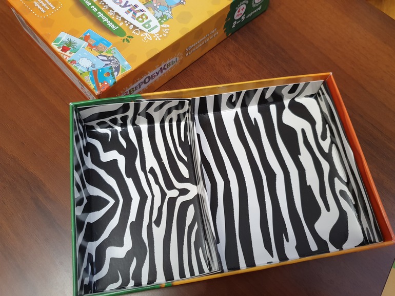 "Зверобуквы" куплены очень давно, еще до увлечения мною настольными играми. Раньше я покупала игры как обучающе-развивающий материал, поэтому неудивительно, что эта игра удосужилась чести попасть в наш дом)). Начали играть в неё еще до того как Ильдар знал все буквы и читать он в то время не умел. Игра ему сразу понравилась. Играли в неё достаточно часто. Карикатурный стиль рисунков нам понравился. Единственное качество комплектующих, я имею ввиду тонкий картон карточек, и качество коробки ну никак не соответствует запрашиваемой на эти игры цене. Ну прям тонюсенький картон. Мы играем очень аккуратно, но каждый раз при игре я переживаю, что кто-либо из нас может просто случайно помять карточку, так как они очень сильно скользят на любой твердой поверхности. Например на такой доске от стола просто не возможно играть в эту игру.