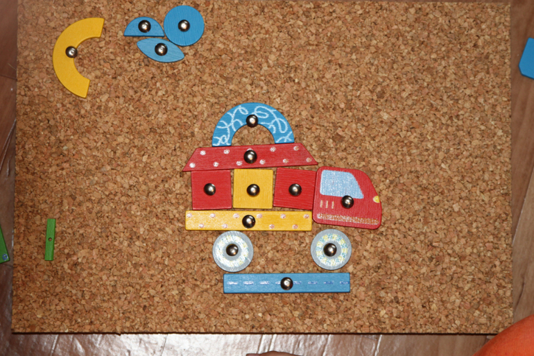 Меня очень расстроило, когда у нас он появился, что кнопочки отлично пальцем можно вставить. У нас кроме него не было других наборов, поэтому я сделала детальки от Джековского набора про транспорт)