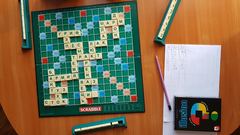 Потом поиграли в бабушкину любимицу - в Скрабл. Тут бабушке не было равных.