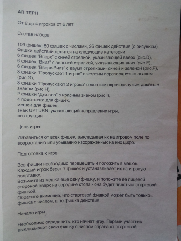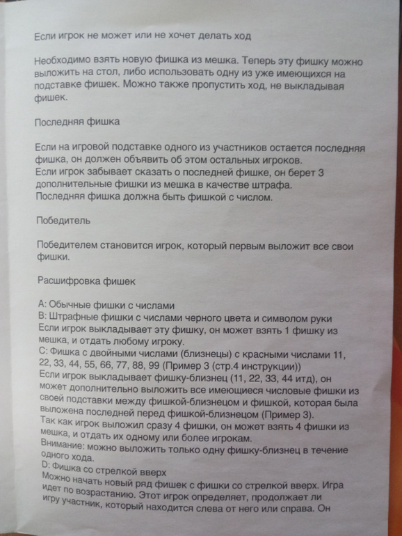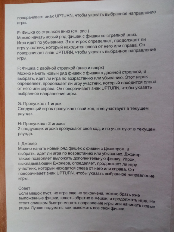 Причем забавно, что буклет с правилами написан на куче языков, кроме русского. На нашем великом и могучем вложен один листок А4 в виде брошюры, в котором даны отсылки на фото в буклете. Блин, не понимаю - на самой коробке напечатано даже, что правила на русском внутри, что мешало напечатать такой же буклет?