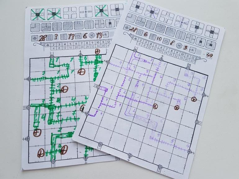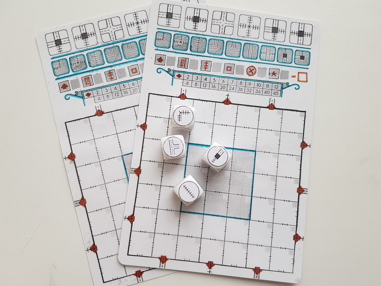 В общем, раунд за раундом бросаем кубики и рисуем (помечая на поле цифрами, что в каком раунде нарисовали. Видимо, чтобы не сбиться со счета).
