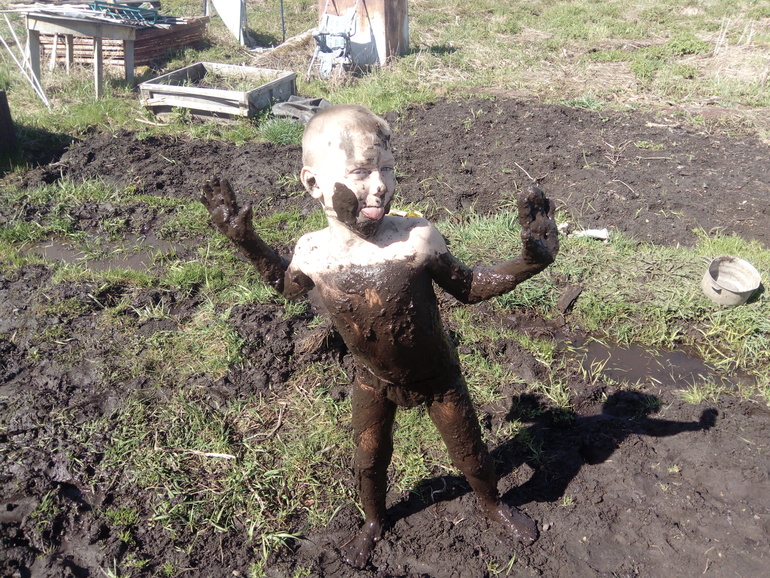 Это не грязь, это земля! Плодородная-класс! Мама сама бы залезла, но решила не позориться, а видео поснимала.