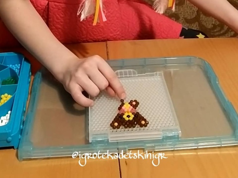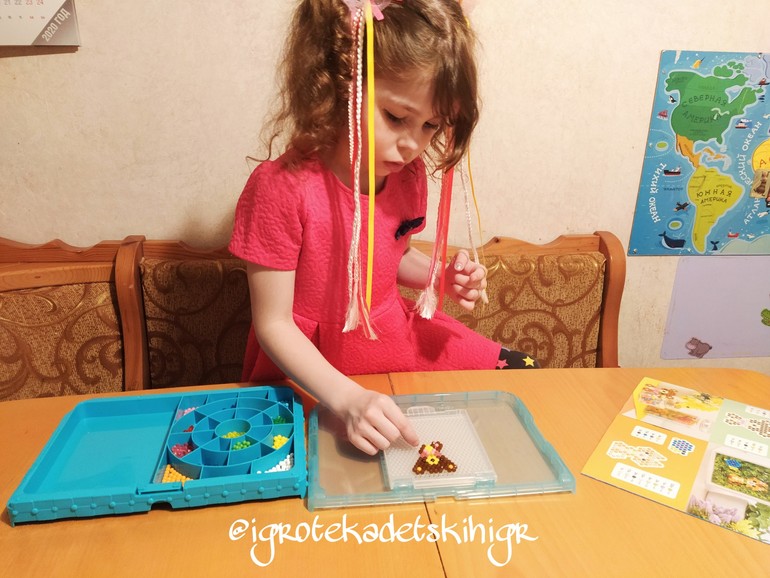 Мы сегодня занимались мелкой моторикой и поиграли в новинку. Аквамозаику. Точнее я ее давно прихватила на распродаже. А сейчас у дочки День Рождения. Открыли.