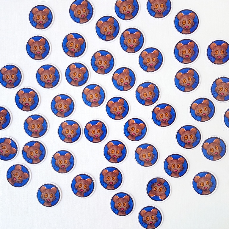 Мышку я по итогу перевела в электронный формат и распечатала на самоклейке, ибо рисовать почти 50 штук мышей не представлялось возможным)))