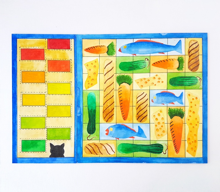 Признаюсь честно, хоть и получилось коряво, но я получила невероятное удовольствие от процесса. 2 дня я сидела за красками, старательно выводя рисунки сначала карандашом, потом от души мазюкая красками. Одна рыбеха получилась прям эдакой блудницей с красными губищами😆, мышь на фишках, как будто уже накосячила и готова быть сожрана котом😂 и еще куча-куча косяков, но мне всё равно нравится, что в итоге получилось.