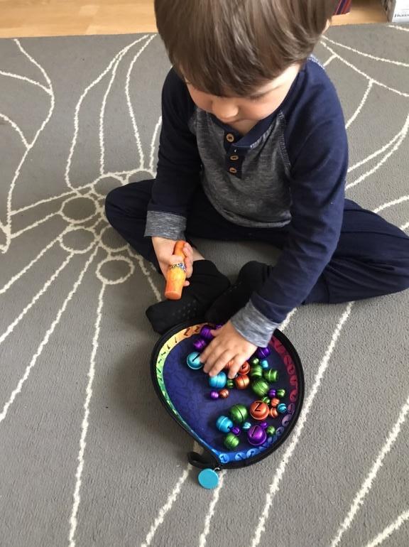 В последнюю сын отчаянно мухлюет, помогая себе руками и отодвигая ненужные колокольчики 😂.