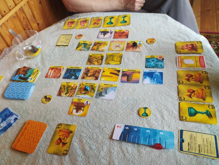 Сегодня играли с карточками, предложенными на Тесере в качестве хоумрула. Некоторые подредактировали, добавили свою. В итоге, конечно, процесс игры стал более распространенным. Теперь появляется какая-то осознанная траектория движений в сторону локаций, приносящих бонусы. Детям очень понравился карточный допчик!