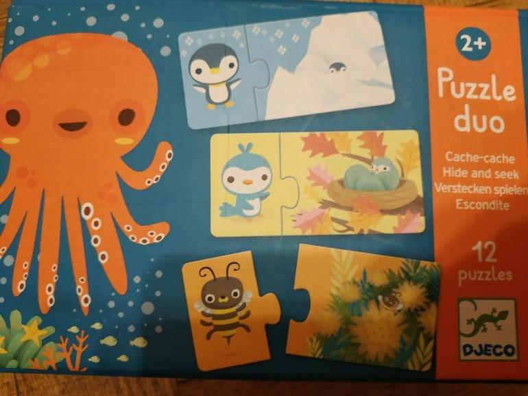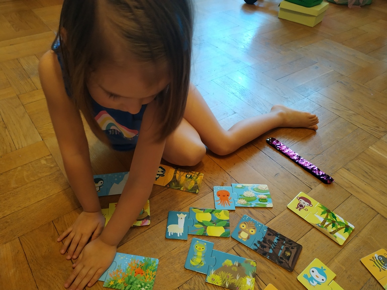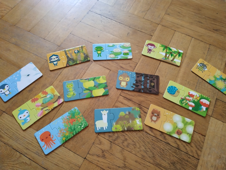 У нас есть похожие пазлы от Джеко. Мамы и малыши животные. Играли с 3 лет правда. Сейчас тоже играем как в мемори.