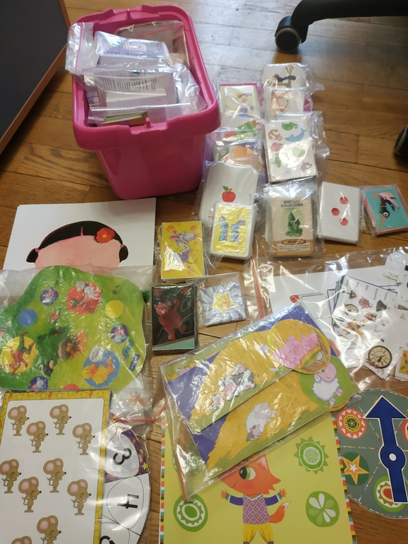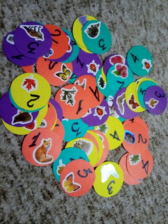 Из самодельных есть звуковое мемори, кот и мыши, математическая игра Жуки, и несколько лото по темам профессии, животные, времена года.