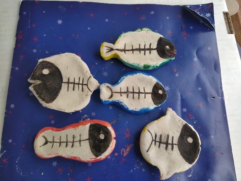 Света, у тебя же фигурки самодельные для Каменного века и карточки Ксюша раскрашивала для стаканчиков. По-моему очень достойные самоделки и запомнятся надолго.