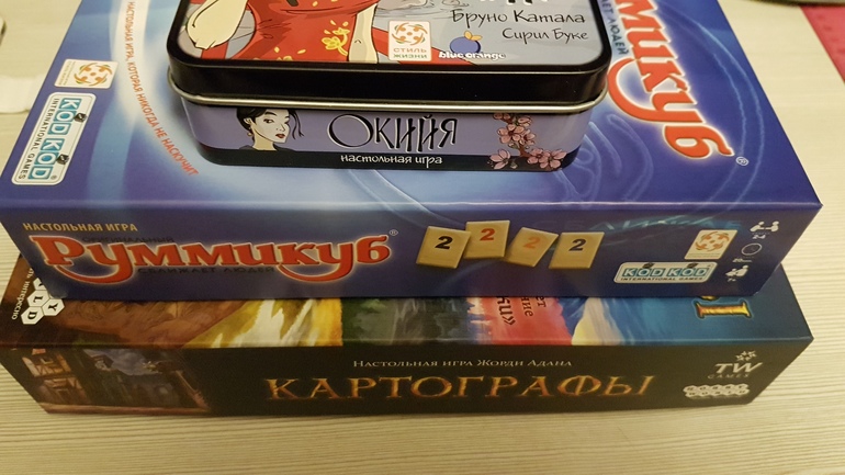 В Руммикуб потому, что сегодня его праздник 😁. Каотографы нам очень нравятся, пишу о них обзор. Окийя очень нравится дочке, но сегодня мой день был - из трех партий 2 мои победы и одна ничья.