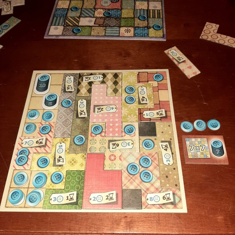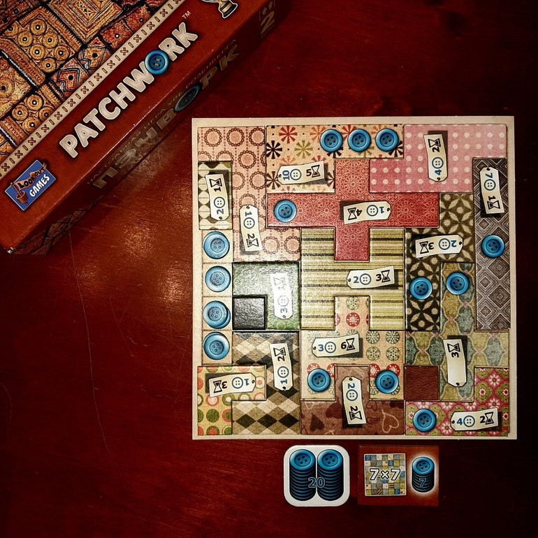 Муж с сыном еще сыграли 2 раза в Пэчворк. Мне эта игра нравится, хотя я пока ни разу не побеждала - пространственное мышление - не мой сильный козырь. Сын играет хорошо, но против папы ничего не мог сделать - обе победы за мужем.