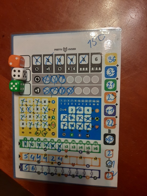 Пнп "Хитрого 1" стал нашей игрой начала мая. Стоило распечатать планшеты, взять несколько кубиков от Квикса и докупить еще оранжевый с фиолетовым - как "Хитрый" прочно выселил все остальные игры. Мы играли в него вечерами, между уроками, вдвоем, втроем, сын даже соло-режим освоил, И каждый раз мы думали: " как можно придумать такую гениальную игру?".