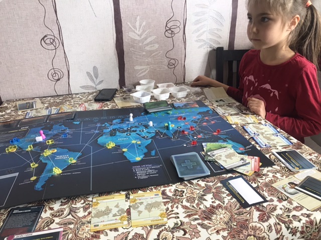 Напряжение растёт, безысходность нарастает, болезни мутируют. Сегодня мы играли за март и проиграли, не уследили за вспышками и превысили их максимальное количество, хотя выполнили 2 цели и почти третью... дочка расстроилась, но играть все так же хочет, мне тоже очень нравится эта кампания, только папа наш не любит кооперативы, но терпит😄.