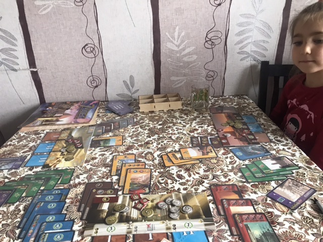 Игра просто состоит из огромного количества нюансов! Пришлось посмотреть летсплей, читать правила, потом ещё комментарии на Тесере просматривать, так как после прочтения правил возникло больше вопросов чем ответов 🤣. Сам процесс несложный, но тяжело с первого раза запомнить все возможности заработка очков, а их много, очень много. Не последнюю роль играет рандом в выходе карт, который в итоге стоил мне победы)). Все уже поняли, что я столько жалуюсь потому что проиграла? 😂