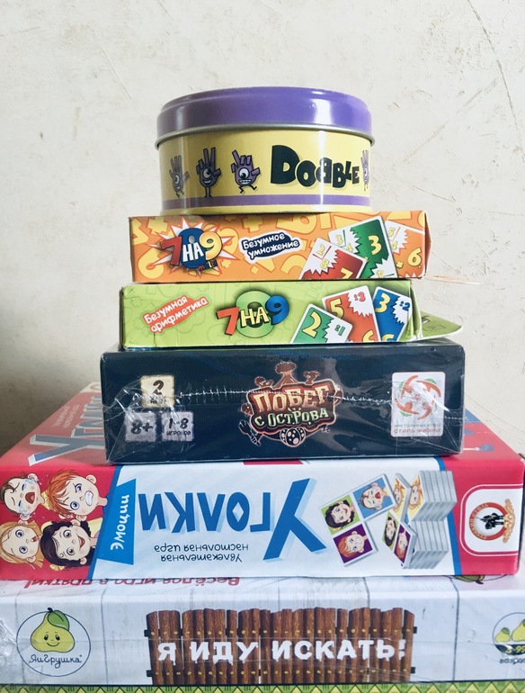 Оказалось, всё намного проще, зря мы боялись, что будет трудно. Я, конечно, выиграла, но дочка сбрасывала карты намного быстрее в этом варианте игры. В конце у неё осталось 6 карт в первой партии и 8- во второй. Дочка сказала, что игра с умножением ей легче даётся. Будем тренироваться теперь почаще. Обе коробочки прятать пока не буду.
