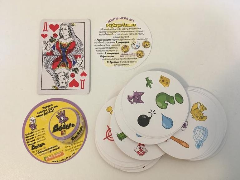 Нет , наверное, активного участника в сообществе, который бы не слышал об этой игре. Уже перед самым сном сын попросил найти коробочку, предварительно чуть не запутав меня, потому что спрашивал он про игру гоббит. А когда я принесла гоббит, оказалось, что это не то. Сын начал объяснять путано, что в игре есть лисички, ёжики и другие звери, а на других карточках нужно найти одного из них, но только он хочет поиграть не с животными, а в такую же , но с разными знаками. В общем, я , конечно, потом догадалась, о чём идёт речь. Сыграли две партии, в порыве скорости сын путается и даёт знакомым предметам смешные названия: крапива вместо кактуса, гаечный ключ вместо скрипичного. Каждый раз умудряется назвать не так, как нужно. Оба раза выиграла я.