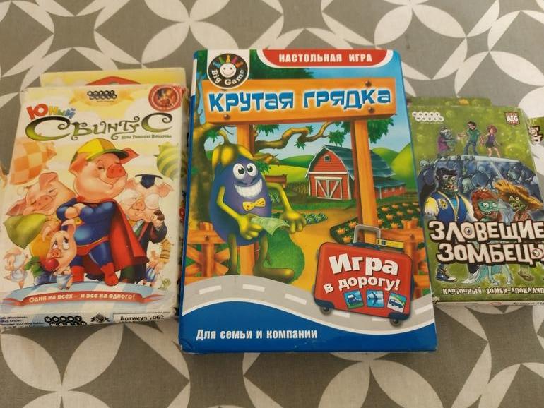 В коробке из-под телефона Юный свинтус, в деревянной-Чудные человечки и ещё в кадр не попало домино Дорога.