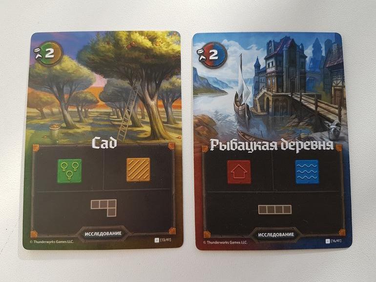 Подсчет очков между раундами вообще не напрягает, он довольно быстрый (с Королевством кроликов не сравнить 😁, хотя и там ничего страшного). Кроме общих целей очки приносят заработанные монетки (их дают карты или окруженные горы). Но монеты можно и потратить - попросить помощи у местного населения. То есть один раз за раунд воспользоваться одной из карт навыков (мини-дополнение).