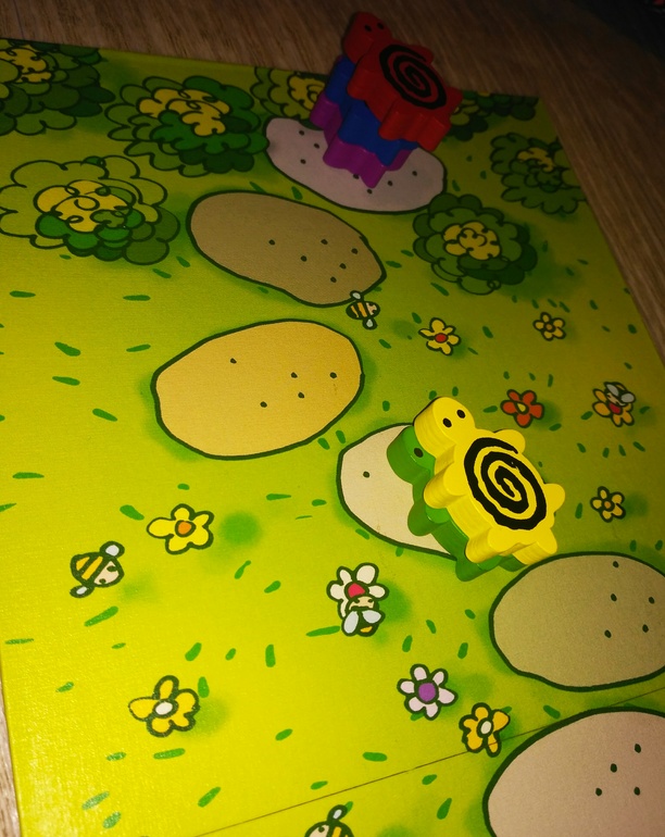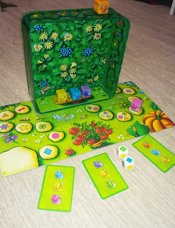 Не могу сказать, что от этой игры я в восторге.Да,игра красивая,яркая,необычно, что улитки ползут по самой коробке .Но есть в ней что-то , что меня отталкивает от нее.