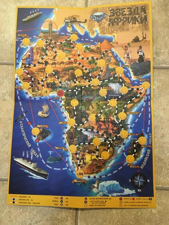 Играли вчера днём в Звезду Африки. Игра-бродилка, но есть деньги, их можно использовать для передвижения. Можно находить сокровища и менять на деньги, попадаются разбойники, которые грабят.