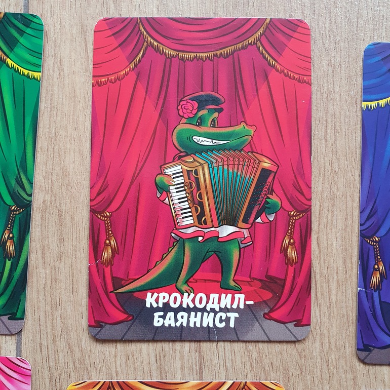 На иллюстрации не баян, а аккордеон. Мы называем крокодила аккордеонистом, а что написано, не читаем (так как читать пока умеем плохо). Надо бы приклеить правильное название, никак не дойдут руки.