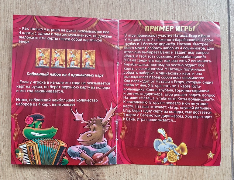 Ну и на последок фото правил, которые вложены в коробку. По замыслу производителя это игра на сбор сетов из четырех одинаковых карт путем обмена картами между участниками по определенным правилам.