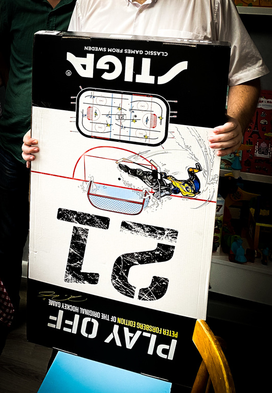 Крутая штука, конечно, но блиин, нам его даже ставить некуда, играли в нашей спальне на кровати 🙈. Мужчины устроили турнир, сказали хоккей очень классный, сражались они долго. Счёт был 9-9, представляете. Шли на равных и только в последнем раунде решилась судьба победителя). Теперь в нашем доме есть мужская настольная игра)). Очень большая 🤪. Влезла только под кровать, и то без коробки, надо что-то придумать, чтобы не запылилась.