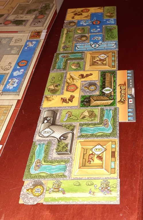 Первым делом, в обеденный перерыв, я выкроила время на "Коринф". Нам очень полюбился этот РоллЭндРайтовый рынок. Выиграла я с 78 очками, но сын совсем ненамного отстал - 75 очков - очень достойно. Чем больше я играю в "Коринф", тем больше убеждаюсь, что основная выигрышная тактика - продавать продукты, построив склад. Если и дальше все будет так, то игра, боюсь, может наскучить, и нужно будет на время ее отложить. Но пока процес очень приятный.