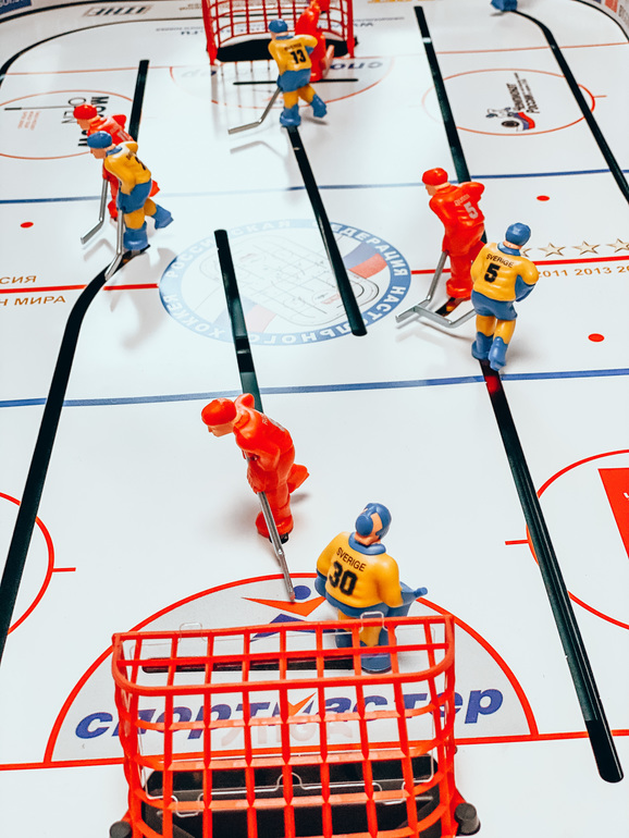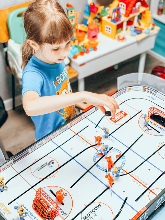 И да, если вы заметили, то мы играли на столе 😄. Это ооочень удобно. Стол остался в гостиной после празднования дня рождения мужа. Для игры в хоккей он подошёл отлично. Но носить его туда ради этой игры мы не будем. Надо придумать что-то другое, потому что хотелось бы играть регулярно. Что игре стоять пылиться. Но посмотрим.