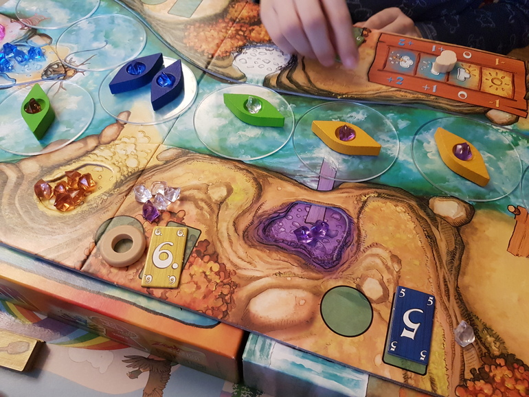 Очень красивая, но играем в нее редко, хотя бы потому, что вдвоем неинтересно. Выиграла бабушка, собрав 4 одинаковых камня. Я вот вроде и видела, на что она нацелилась, а помешать не смогла. Я плохо сыграла.