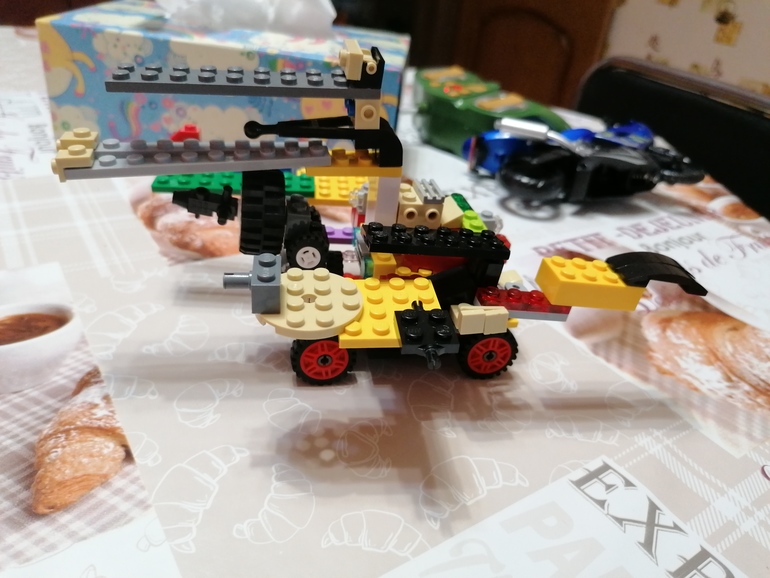 Вверху самодельные Дети Каркассона. А ещё лего трансформеров - танки на колесах делает полдня и бегает мне их показывает