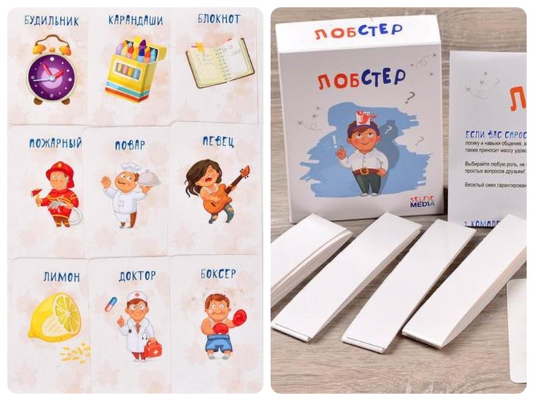 Это аналог "Кто я" или Друг-утюг". Подарили детям на 23 февраля три года назад. Достаем очень редко, потому что и задавать вопросы, чтобы понять изображенное на карточке очень непросто. И снова отказались от правил крепления карточки на голове. Посмотрел, перевернул и отвечаешь (соответственно, задаешь) вопрос.