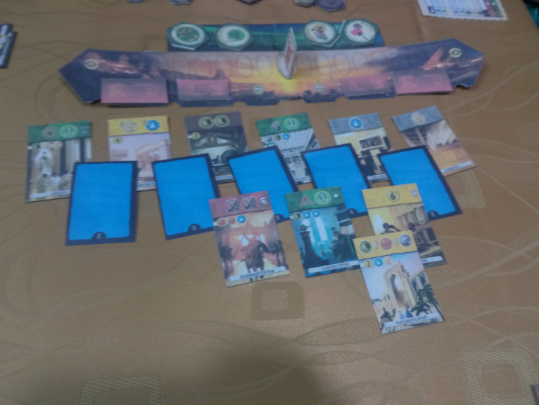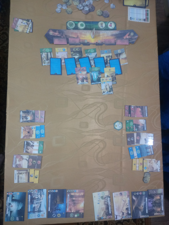 Давно ходил вокруг да около нее. На Али она много раз оказывалась в корзине и столько же раз отправлялась в корзину (мусорную только) или обратно в хотелки. Это одна из тех хайповых, как тут принято говорить, игр, которую я хотел, но даже понятия не имел ни о чем она, ни как выглядит (а это важно при изготовлении пнп). В итоге состряпал на коленке самоделку, даже не закругляя карты и не напрягаясь над округливанием (знаю, знаю, что нет такого слова - меня Ворд предупредил) жетонов и монет. Мы сыграли на ночь глядя партию, около часа разбираясь в правилах. Супруга победила, построив чуда света. Так не по правилам, скажете вы и будете правы. Хотя перед этим я смотрел летсплей одной забавной парочки (я аж на них подписался) - игра простая настолько, что правила из головы тут же вылетели. Вторую партию играли на следующую ночь. Игра понравилась. Дитю явно рано. Хотя…. Попробуем попозжа.