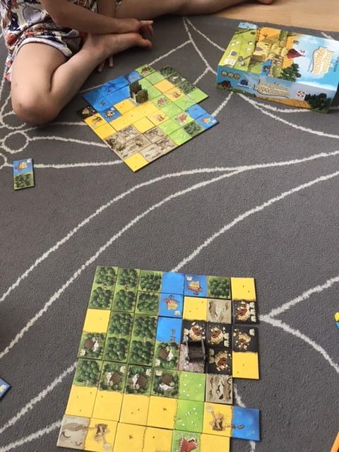 Дальше мы сыграли в Лоскутное Королевство с полями 7*7, дочка играла так впервые и ей очень понравилось. Вот наши как обычно рваные поля
