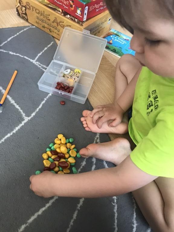Пока мы играли, проснулся сын и долго играл камешками, смешивал их, потом как Золушка сортировал по отделениям органайзера 😄